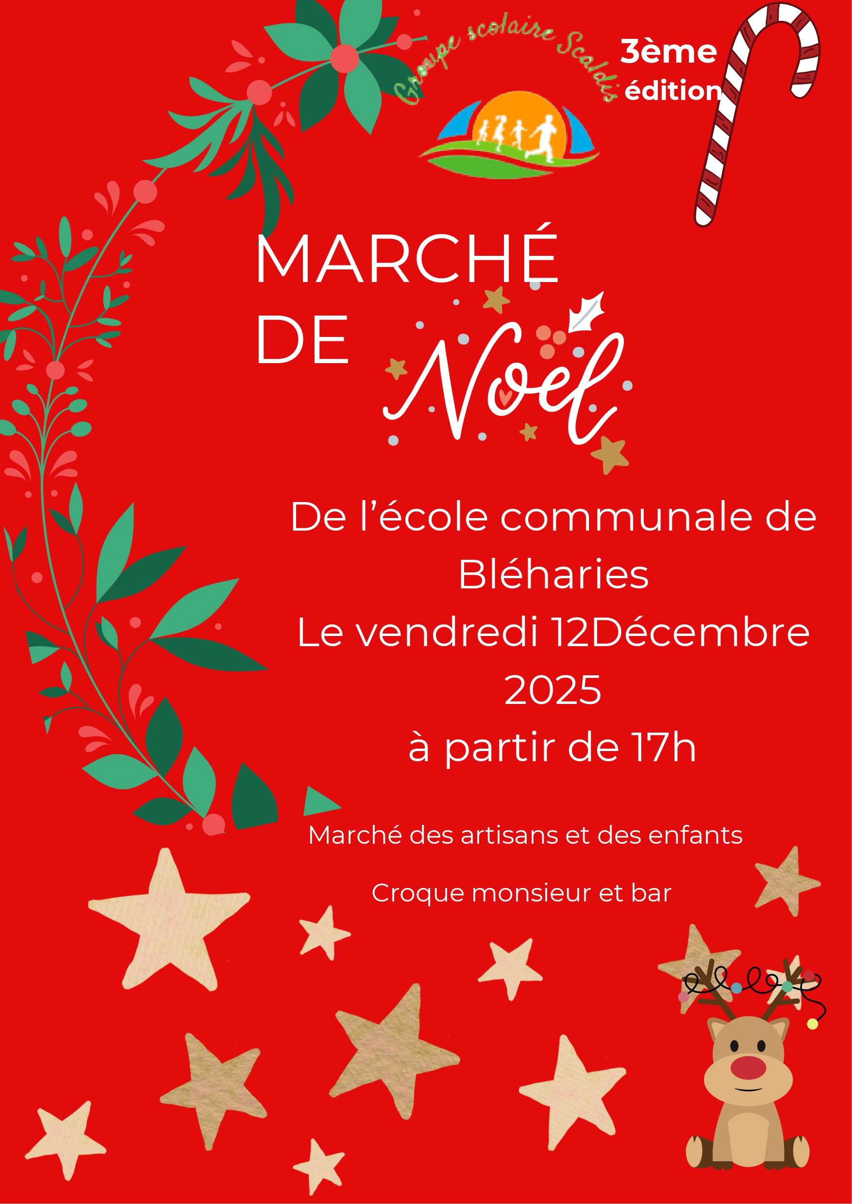 Nous avons le plaisir de vous rappeler que le marché de Noël de l’école communale de Bléharies aura lieu ce vendredi 12 décembre 2025, à partir de 17h.